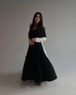 Blazer abaya with its distinctive story and combine crepe of white and black colors manually occupied with thick threads