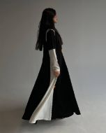 Blazer abaya with its distinctive story and combine crepe of white and black colors manually occupied with thick threads